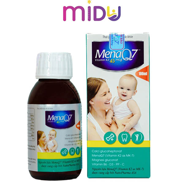 Midu MenaQ7 là thực phẩm bảo vệ sức khỏe chứa MenaQ7, Calci, Vitamin D3 và các dưỡng chất cần thiết, hỗ trợ tăng cường hấp thu canxi vào xương, giúp xương chắc khỏe, tăng chiều cao tối đa cho trẻ.